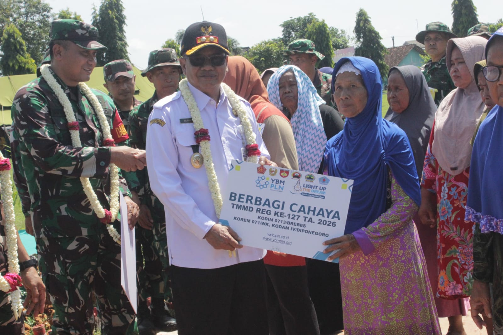 BREBES – Program TNI Manunggal Membangun Desa (TMMD) Reguler ke-127 Kodim 0713/Brebes tidak hanya meninggalkan jejak infrastruktur jalan, tetapi juga menghadirkan cahaya bagi kehidupan warga. Pada hari penutupan, Rabu (11/3/2026), dilakukan penyerahan secara simbolis bantuan KWH listrik gratis kepada warga dan fasilitas pendidikan.