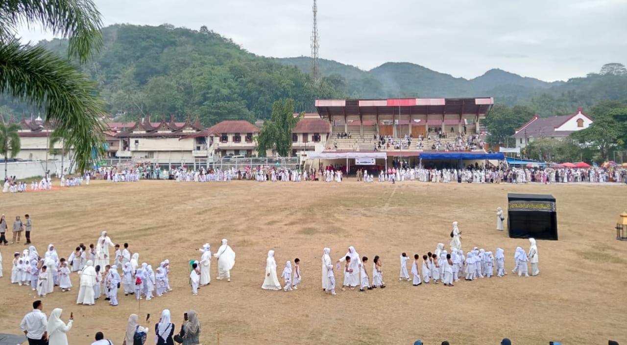 Sawahlunto, dutametro.com – Peragaan Manasik Haji tingkat sekolah Taman Kanak-kanak (TK) se- Kota Sawahlunto diikuti 627 pelajar dibuka Wakil Wali Kota Sawahlunto Jeffry Hibatullah, Rabu (12/11/2025) dilapangan Sepakbola Ombilin.