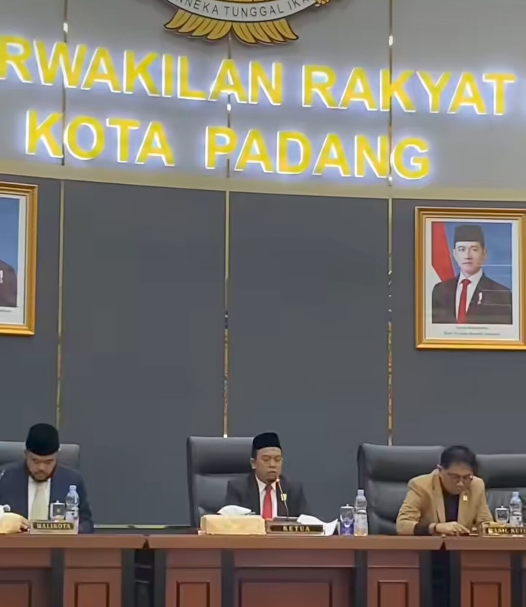 Rapat dipimpin langsung oleh Ketua DPRD Kota Padang, H. Muharlion, S.Pd., didampingi para Wakil Ketua, Osman Ayub dan Jupri, serta Sekretaris DPRD, H. Hendrizal Azhar, S.H., M.M. Dari pihak eksekutif, hadir Wali Kota Padang, Fadly Amran, bersama jajaran kepala OPD, camat, direktur BUMD, perwakilan RSUD Rasyidin, Forkopimda, serta para undangan resmi lainnya.