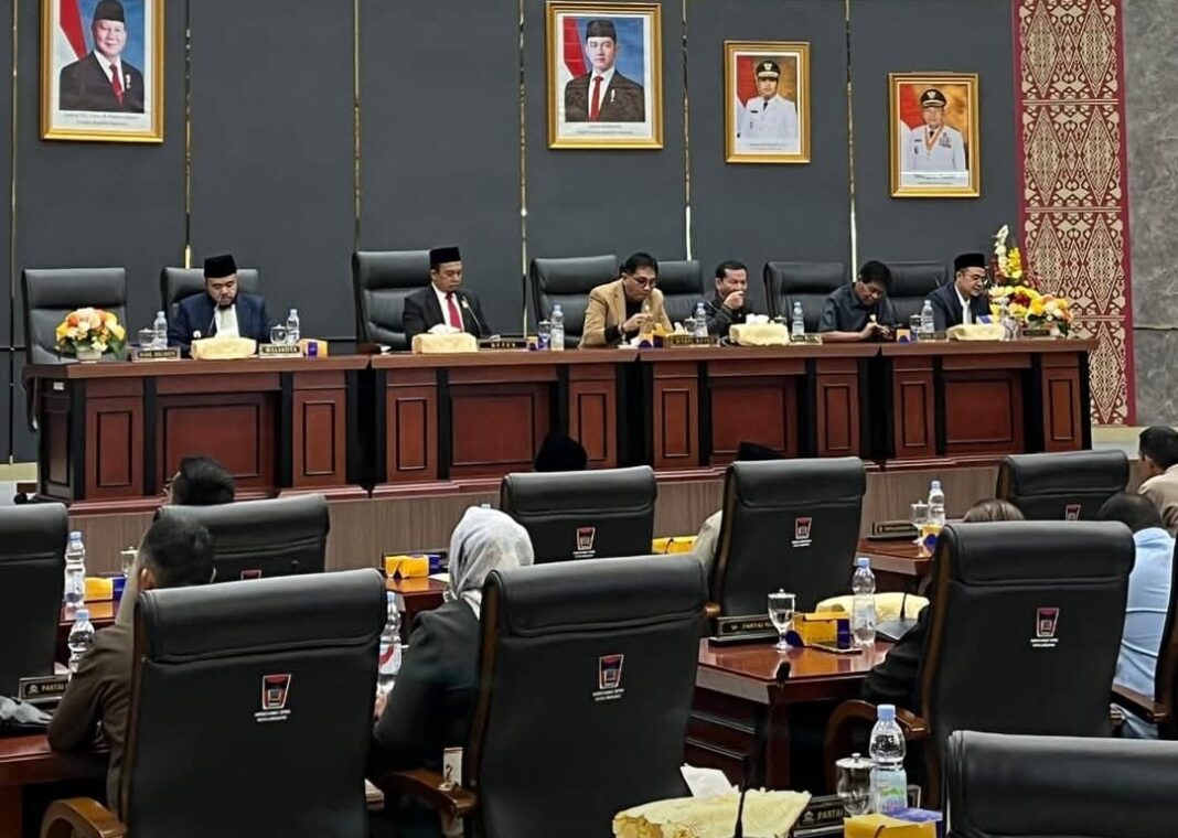 Rapat dipimpin langsung oleh Ketua DPRD Kota Padang, H. Muharlion, S.Pd., didampingi para Wakil Ketua, Osman Ayub dan Jupri, serta Sekretaris DPRD, H. Hendrizal Azhar, S.H., M.M. Dari pihak eksekutif, hadir Wali Kota Padang, Fadly Amran, bersama jajaran kepala OPD, camat, direktur BUMD, perwakilan RSUD Rasyidin, Forkopimda, serta para undangan resmi lainnya.