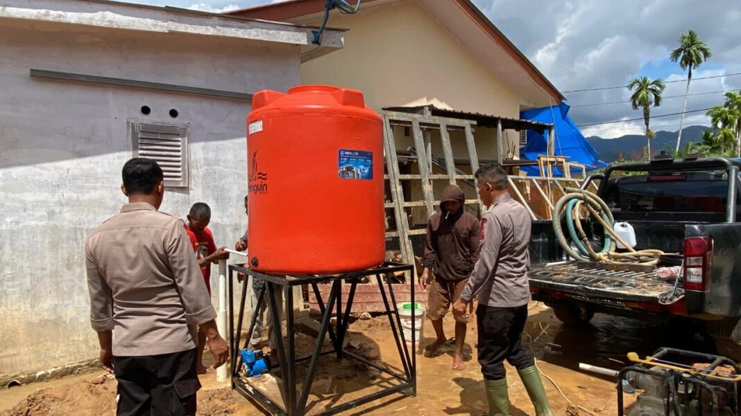 Dalam kegiatan tersebut, personel Brimob melakukan pembersihan satu unit rumah milik warga yang terdampak material pasir, kayu, dan batu akibat banjir bandang. Selain itu, personel juga melaksanakan pembangunan MCK di Masjid At-Taqwa Muhammadiyah, penggalian sumur umum, serta pembuatan ball tank air guna menunjang kebutuhan air bersih masyarakat sekitar.