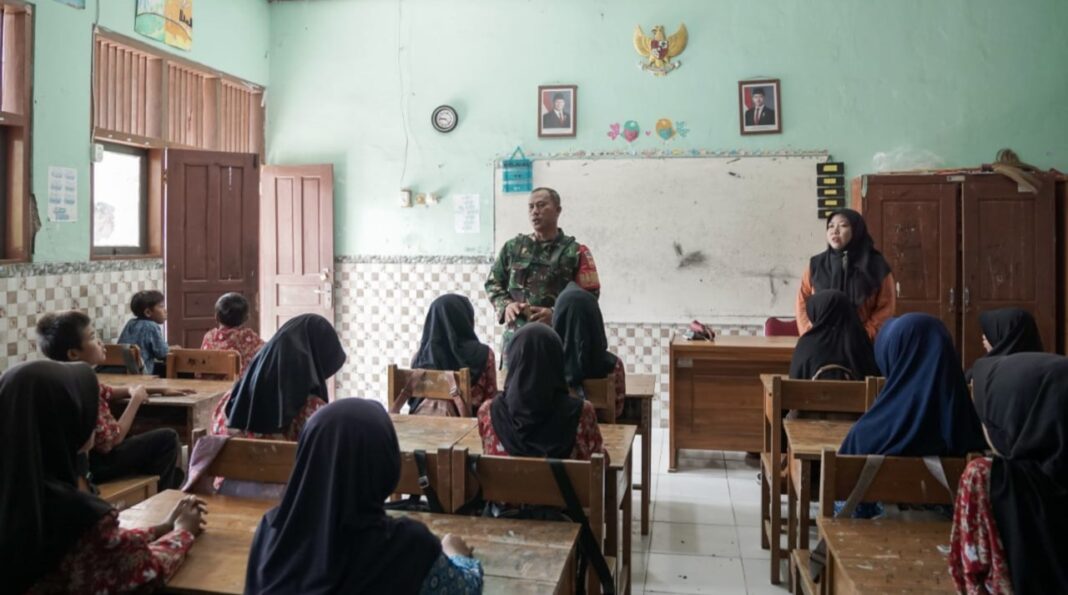 Kehadiran prajurit TNI di dalam kelas ini menjadi pemandangan yang memotivasi para siswa. Dengan didampingi Guru Kelas 6, Ibu Waenah, S.Pd., Serka Sagiman memberikan materi wawasan kebangsaan serta dorongan moril agar anak-anak desa tidak patah semangat dalam mengejar cita-cita.