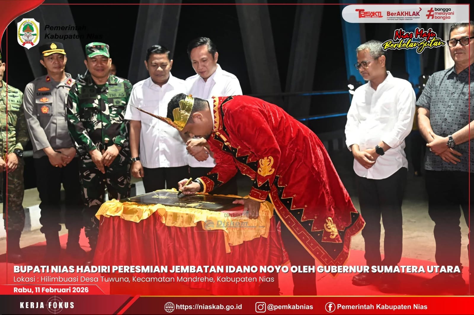“Peresmian jembatan ini menjadi langkah strategis dalam memperkuat konektivitas dan mendorong pertumbuhan ekonomi masyarakat di wilayah Kepulauan Nias, dengan selesai dan diresmikannya jembatan ini harapkan dapat memberikan manfaat nyata bagi masyarakat serta mendukung percepatan pembangunan daerah.” Ucap Gubsu (herman)