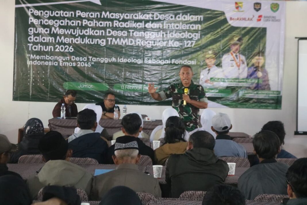 Rancabali, Kabupaten Bandung – Dalam rangka TMMD Reguler ke-127 Tahun 2026, Kodim 0624/Kab. Bandung mengajak masyarakat Desa Patengang aktif mencegah paham radikal dan intoleran. Kegiatan digelar pada Jumat, 13 Februari 2026, di Aula Walini, Kampung Walini RW 14, dan diikuti sekitar 100 peserta dari tokoh masyarakat, pemuda, hingga pelajar se-Kecamatan Rancabali.