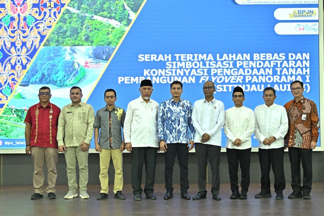PADANG — Proses pengadaan tanah untuk pembangunan Flyover Panorama Sitinjau Lauik menunjukkan progres signifikan. Hal tersebut ditandai dengan serah terima lahan bebas dari panitia pengadaan tanah yang diketuai Kepala Kantor Wilayah ATR/BPN Sumatera Barat (Sumbar) kepada Balai Pelaksanaan Jalan Nasional (BPJN) Sumbar sebagai instansi pelaksana proyek.
