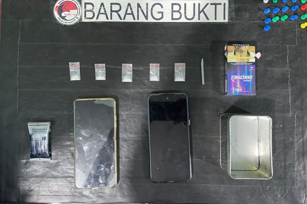 “Saat dilakukan penggeledahan yang disaksikan oleh warga setempat, petugas menemukan sejumlah barang bukti yang diduga berkaitan dengan tindak pidana narkotika,” ucap Kabid Humas Polda Bengkulu.