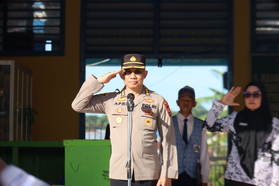 Bengkulu – Karo Logistik Polda Bengkulu, Kombes Pol Aprianto Suseno, S.I.K, menjadi pembina upacara bendera di SMP Negeri 14 Kota Bengkulu, Senin (13/4/2026) pukul 07.30 WIB.
