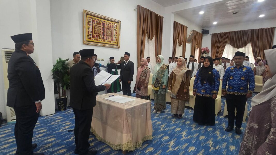 Dalam kegiatan yang turut didampingi Wakil Bupati Ahmad Fadly, S.Psi, Sekda Abdurrahman Hadi, para Asisten, Staf Ahli Bupati dan kepala OPD, Bupati Eka Putra melantik dan mengambil sumpah jabatan sebanyak 4 orang pejabat managerial dan 2 orang pejabat pengawas.