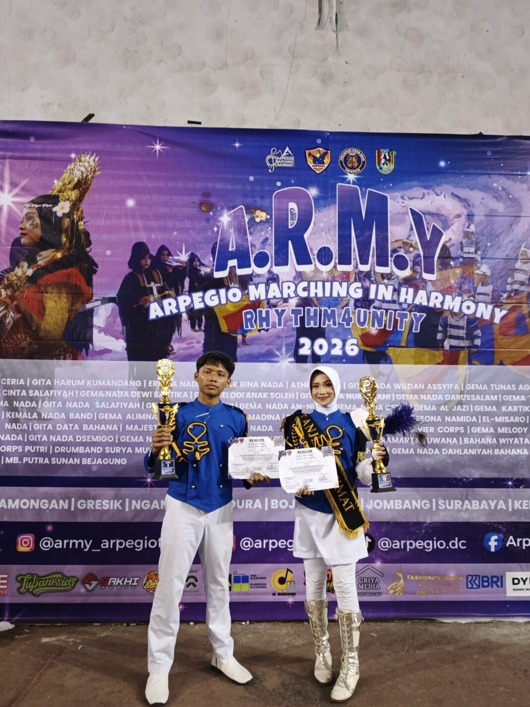 Nganjuk ,dutametro.com.— Kejuaraan Army Rhythm 4 Unity (sering disebut A.R.M.Y Rhythm 4 Unity) adalah kompetisi drum band/marching band bergengsi yang fokus pada teknik, kekompakan, dan leadership (terutama drum major). Ajang ini menjadi tempat unjuk bakat bagi pelajar dari tingkat TK/RA hingga menengah. Acara ini berfokus pada pengembangan bakat marching band di tingkat daerah, khususnya di Jawa Timur.