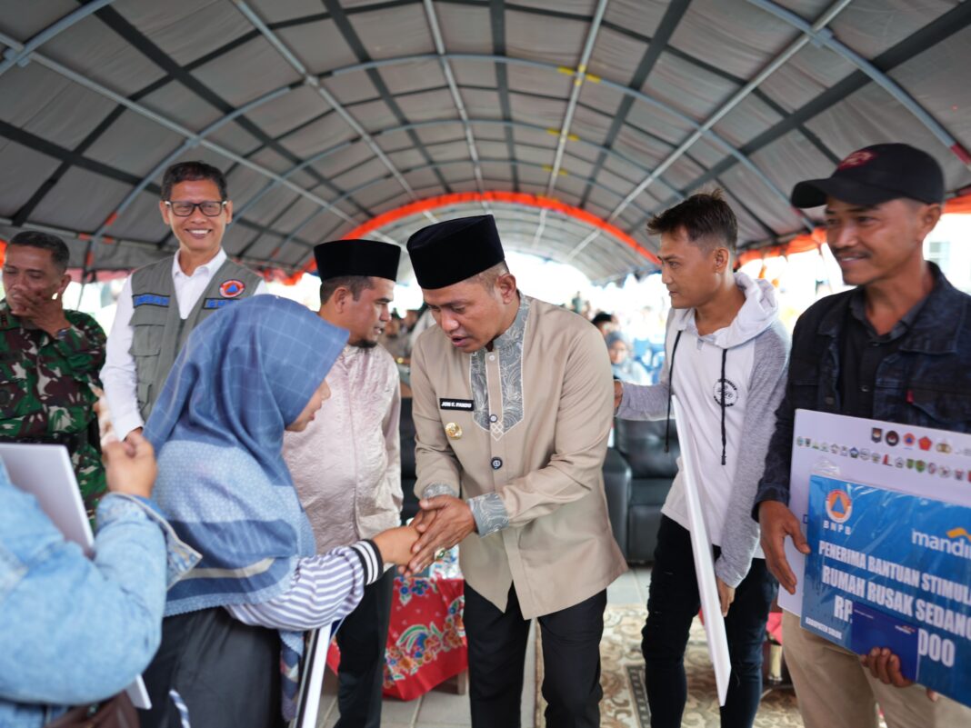 Koto Baru – Pemerintah Pusat dan Pemerintah Daerah Kabupaten Solok menyerahkan bantuan perbaikan rumah kepada masyarakat terdampak bencana hidrometeorologi yang terjadi beberapa waktu lalu. Bantuan ini diberikan sebagai bentuk komitmen pemerintah dalam membantu pemulihan kondisi hunian masyarakat pascabencana.