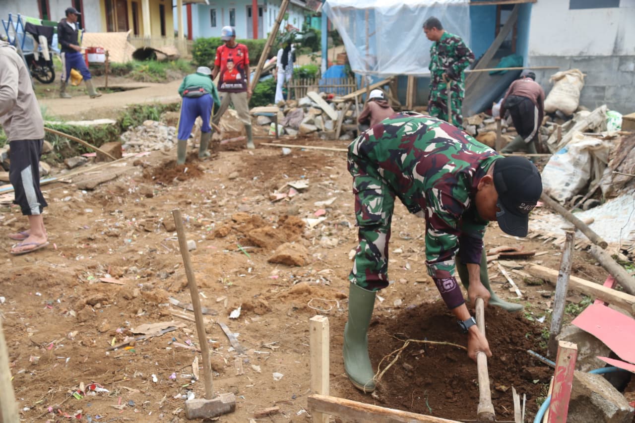 Cipelah, Kab. Bandung – Semangat gotong royong dan kepedulian terhadap sesama terus berkobar dalam pelaksanaan TMMD ke-127 Kodim 0624/Kab. Bandung. Kali ini, Satgas TMMD memulai pengerjaan program perbaikan rumah tidak layak huni (Rutilahu) di rumah Bapak Saefuloh, warga Kp. Kubangsari Rt 04 Rw 09 Desa Cipelah Kec. Rancabali Kab. Bandung.