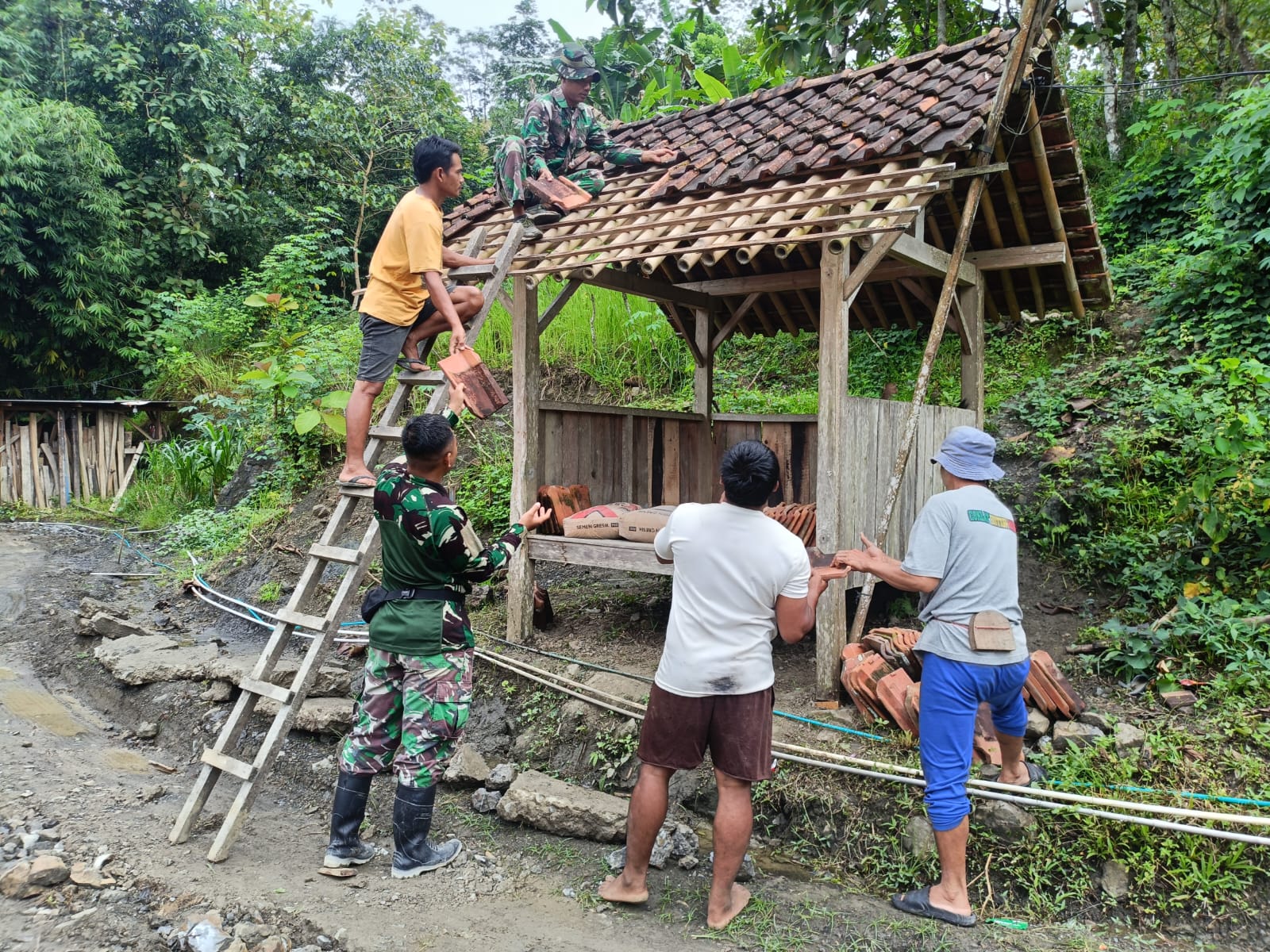 Kegiatan ini menjadi bagian dari sasaran fisik tambahan dalam program TNI Manunggal Membangun Desa (TMMD), sebagai wujud nyata kemanunggalan TNI bersama rakyat. Dengan penuh semangat gotong royong, prajurit TNI dan warga bahu-membahu membersihkan lumut yang menempel di atap genteng serta memperindah kembali bangunan poskamling dengan sapuan cat baru yang cerah dan membangkitkan semangat.