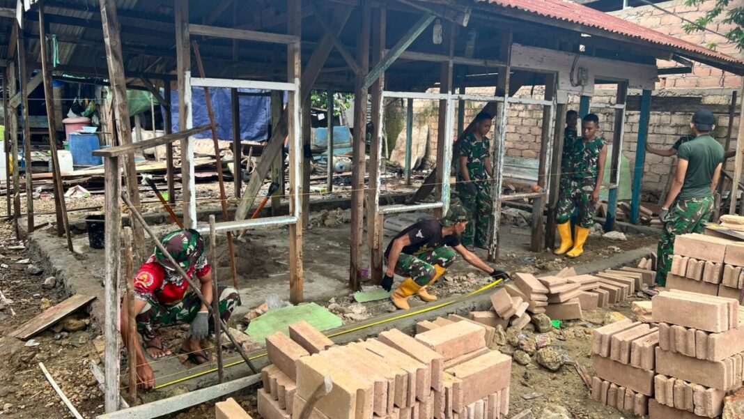 Kendari – Personel Satgas TMMD ke-127 Kodim 1417/Kendari terus memacu pengerjaan rehabilitasi Rumah Tidak Layak Huni (RTLH) milik warga kurang mampu dengan penuh dedikasi, di Kel. Petoaha, Kec. Nambo, Kota Kendari, Sabtu (14/2).