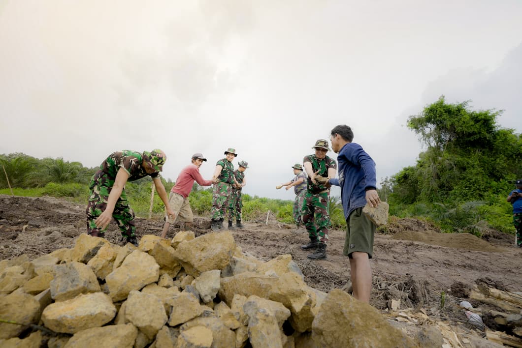 Proses pengerjaan dilakukan secara bersama-sama antara Satgas TMMD dan warga setempat, memadukan tenaga manual dan alat berat. Dengan semangat gotong royong, pemasangan material gorong-gorong berjalan cepat dan efektif, sesuai tema TMMD: “Dengan Semangat TMMD Mewujudkan Pemerataan Pembangunan dan Ketahanan Nasional di Wilayah”.
