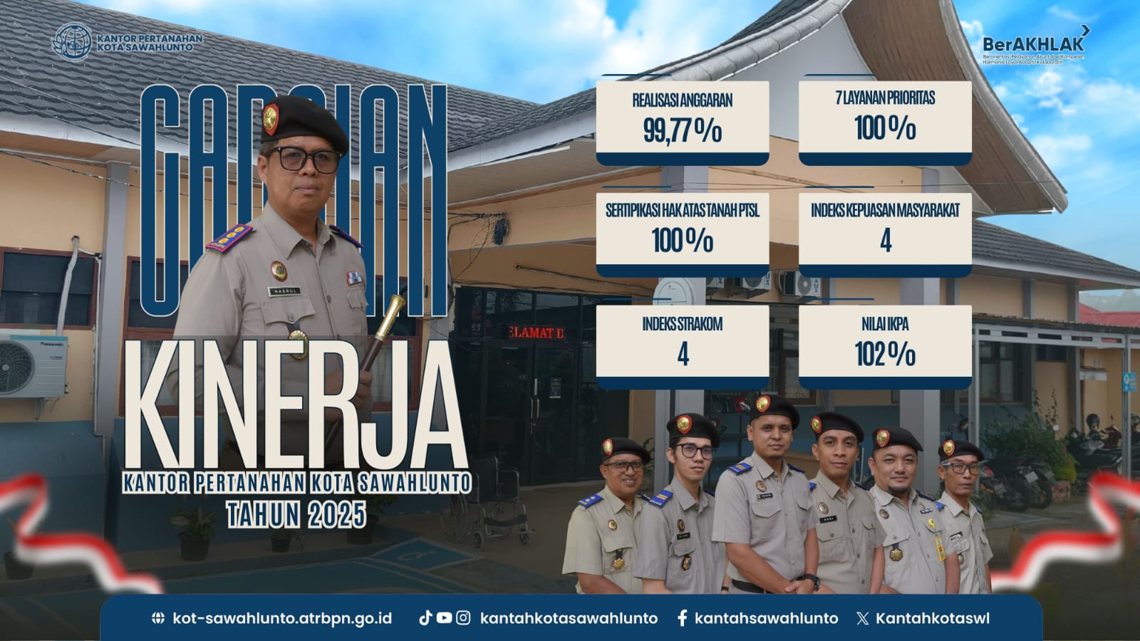 Capaian kinerja ini merupakan hasil kerja keras seluruh jajaran Kantor Pertanahan Kota Sawahlunto, dukungan pemangku kepentingan, serta partisipasi aktif masyarakat. Ke depan, Kantor Pertanahan Kota Sawahlunto berkomitmen untuk terus meningkatkan kualitas layanan pertanahan yang profesional, modern, dan terpercaya sesuai dengan semangat BerAKHLAK.(**)