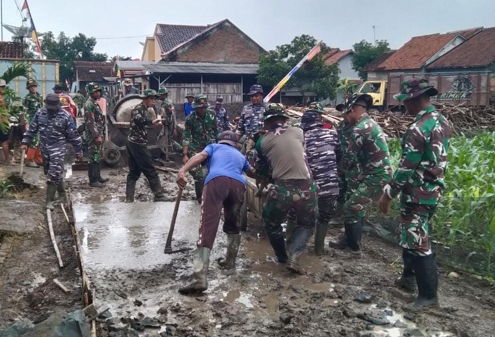 BREBES – Semangat gotong royong luar biasa terpancar dari raut wajah warga Desa Cikuya, Kecamatan Banjarharjo. Ratusan warga bersama personel TNI dan Polri bahu-membahu melaksanakan pengerasan jalan melalui pembangunan rabat beton dalam rangka program TNI Manunggal Membangun Desa (TMMD) Reguler ke-127 Kodim 0713/Brebes. Senin (16/02/2026),