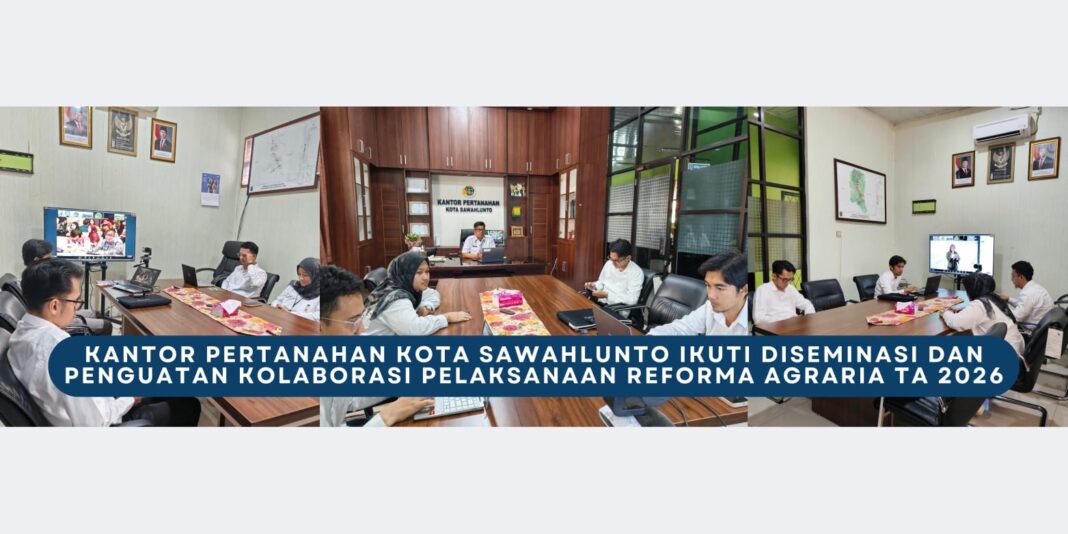 Sawahlunto,dutametro.com – Kantor Pertanahan Kota Sawahlunto mengikuti kegiatan Diseminasi dan Penguatan Kolaborasi Pelaksanaan Reforma Agraria Tahun Anggaran 2026 yang diselenggarakan oleh Direktorat Jenderal Penataan Agraria Kementerian Agraria dan Tata Ruang/Badan Pertanahan Nasional (ATR/BPN), Rabu11 Maret 2026 secara daring.
