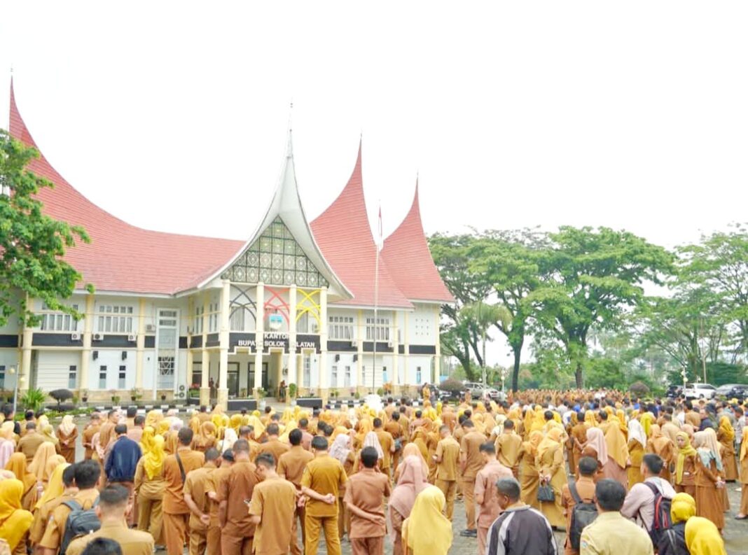 Hal ini disampaikan Bupati Solok Selatan H. Khairunas dalam Apel Gabungan ASN di Lingkungan Pemerintah Kabupaten Solok Selatan di Halaman Kantor Bupati, Senin (16/3/2026).