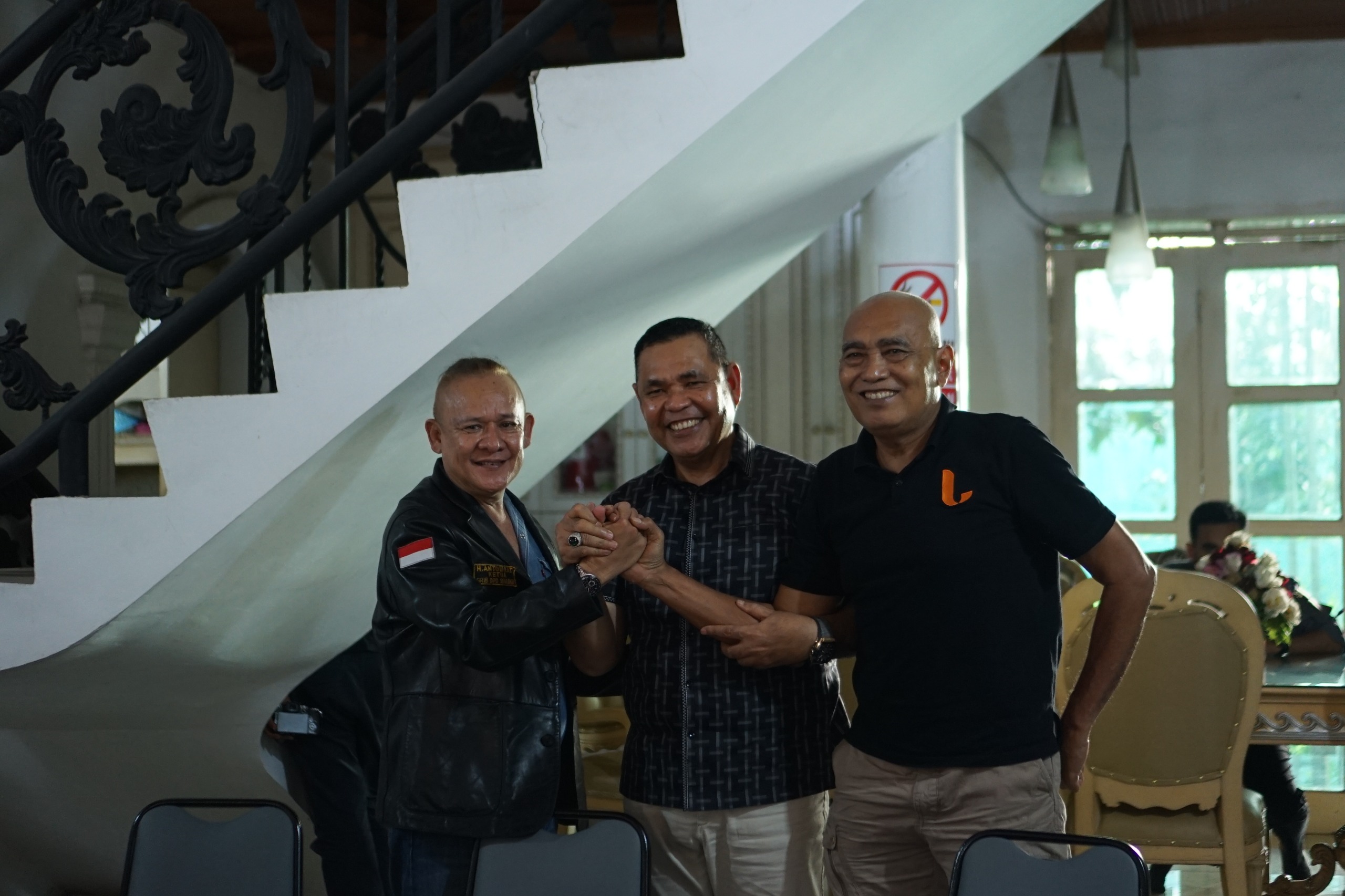Ketika mendengar pernyataan dukungan dari GRIB Sumbar, Epyardi langsung berterima kasih dan bertepuk tangan serta mengajak Ketua DPD GRIB Sumbar untuk berfoto.