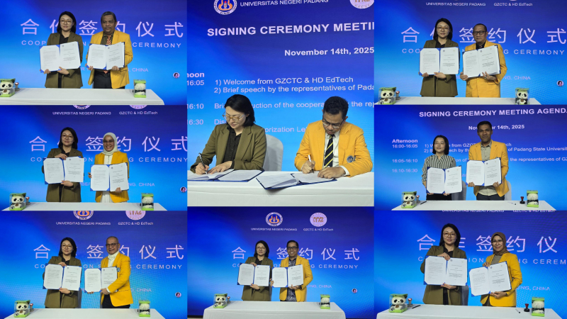 Penandatangan oleh Rektor UNP Krismadinata PhD dan Direktur GZCTC Dr. Yu Ting di tanggal 16 November dan diikuti oleh dekan selingkungan UNP yang terkait, berdasarkan informasi dari Direktur Layanan International UNP Prof. Rusnardi Rahmad, Ph. D bahwa Dekan di lingkungan UNP yang ikut dalam agenda ini yakni Dekan FK, Dekan FPK, Dekan FPP, Dekan FBS, Dekan FIS, Dekan FIP dan Dekan FEB.