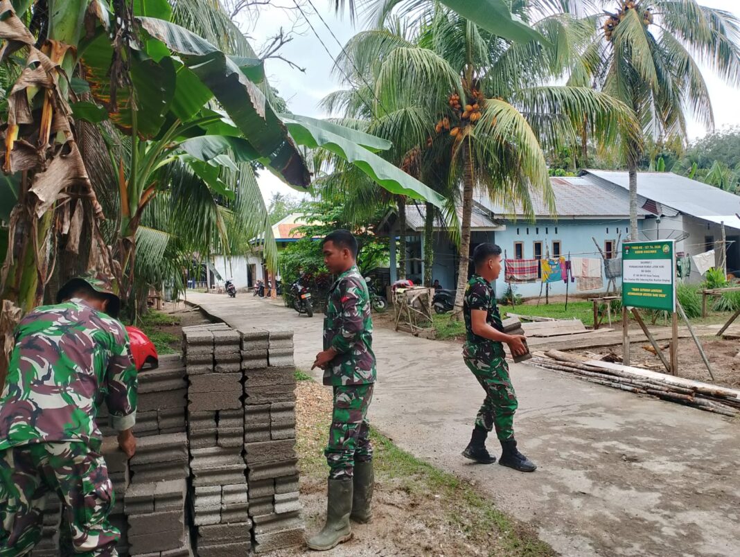 Tanjung, Kuansing – Satgas TMMD (TNI Manunggal Membangun Desa) ke-127 Kodim 0302/INHU terus memacu pembangunan rumah layak huni (Rutilahu) milik Ibu Baida di RT.006 RW.003 Desa Tanjung, Kecamatan Kuantan Hilir Seberang, Kabupaten Kuantan Singingi. Pada hari Selasa, 17 Februari 2026, pukul 08.30 WIB, kegiatan difokuskan pada melanjutkan pemasangan batu batako dan perakitan besi untuk persiapan pengecoran balok atas.