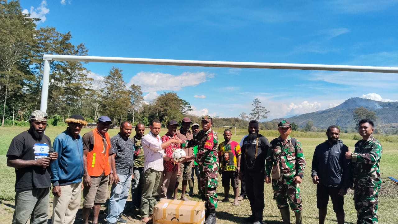 Wamena, dutametro.com– Dalam rangka mendukung pengembangan potensi generasi muda dan mempererat tali persaudaraan dengan masyarakat, Satgas TMMD Ke-126 Kodim 1702/Jayawijaya menyerahkan bantuan berupa bola dan jaring gawang kepada pemuda Kampung Algonik, Distrik Piramid, Kabupaten Jayawijaya. Jumat (17/10/2025).