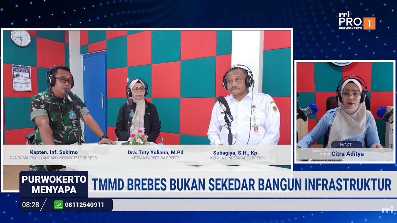 Hal tersebut ditegaskan dalam dialog interaktif program “Purwokerto Menyapa” di Radio RRI Pro 1 Purwokerto, Rabu (18/02). Hadir sebagai narasumber utama yakni Danramil 11/Paguyangan, Kapten Arm Sukirno (mewakili Dandim 0713/Brebes), Kepala Bapperida Kabupaten Brebes, Dra. Tety Yuliana, M.Pd., serta Kepala Dinpermades Kabupaten Brebes, Subagiyo, S.H., M.Si.