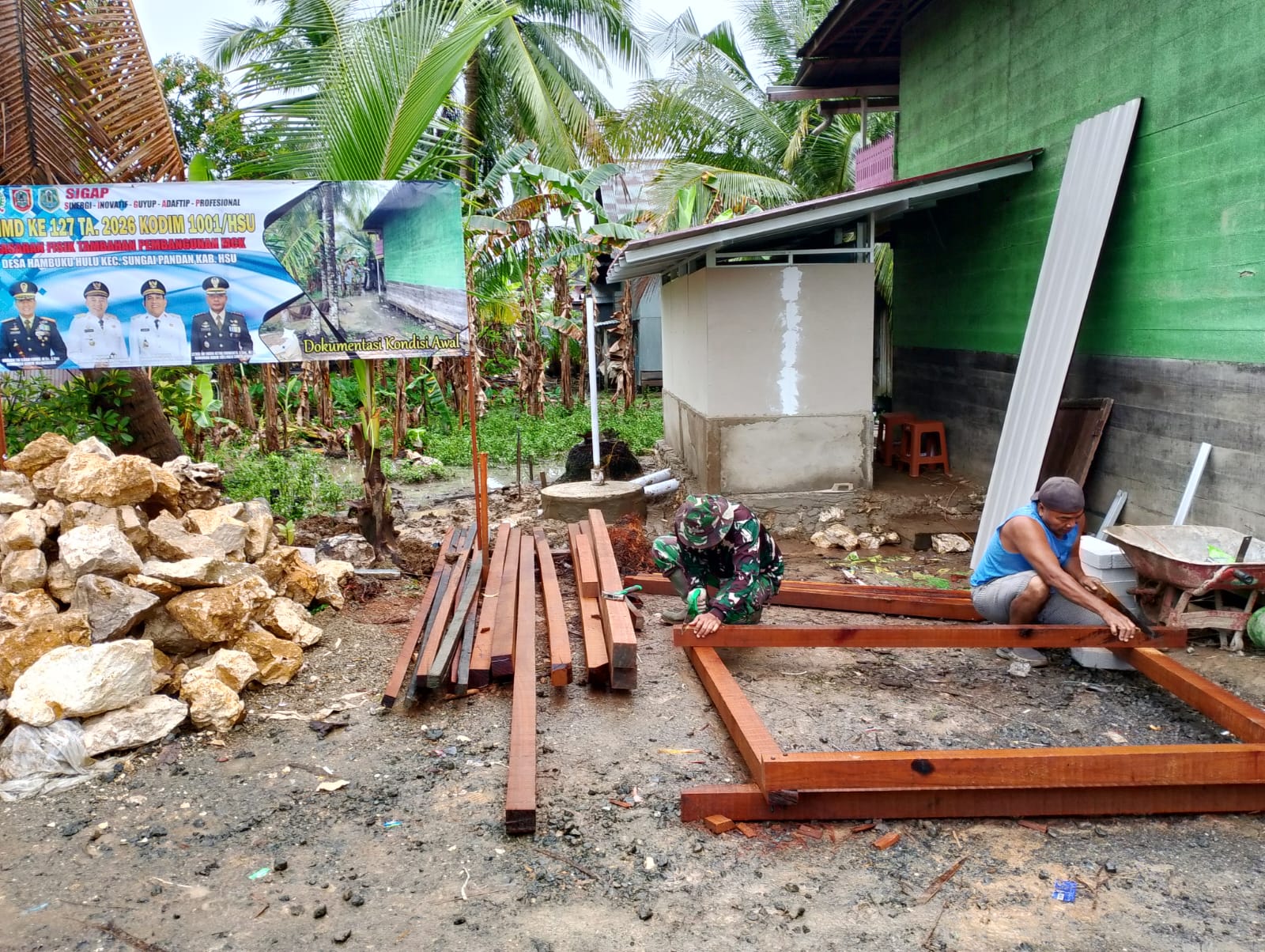 Amuntai – Satuan Tugas TNI Manunggal Membangun Desa (TMMD) ke-127 Kodim 1001/HSU-BLG terus melanjutkan pekerjaan fisik pada sasaran kedua, yakni pembangunan tower air guna menunjang fasilitas Mandi, Cuci, Kakus (MCK) di Musholla/Langgar Darul Ibadah, Desa Tambalang, Kecamatan Sungai Pandan, Kabupaten Hulu Sungai Utara, Rabu (15/02/2026).