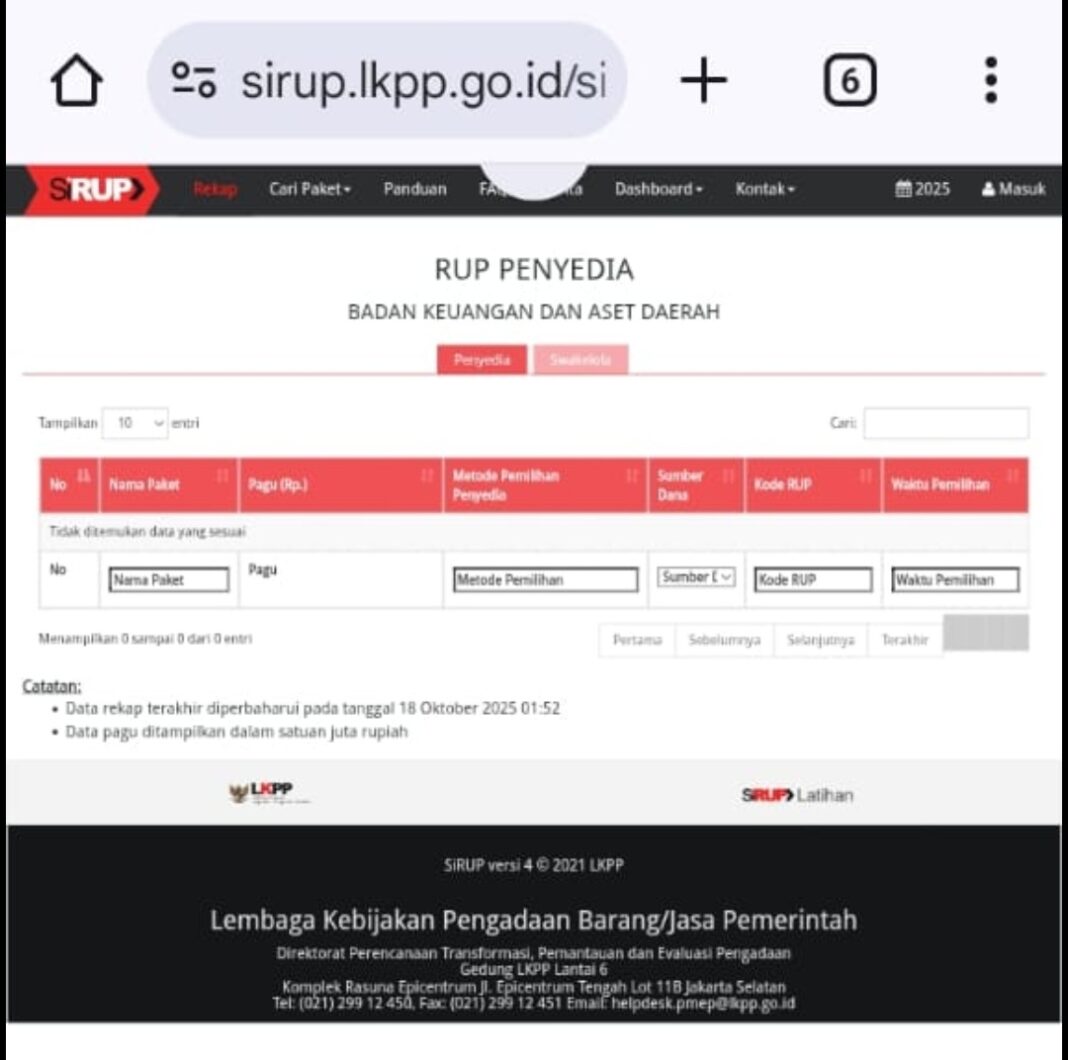 Pasalnya, kolom RUP Penyedia di berbagai Organisasi Perangkat Daerah (OPD) dan Satuan Kerja Perangkat Daerah (SKPD) lingkup Pemerintah Kabupaten Tulang Bawang Barat (Tubaba) Tahun 2025 terkesan ditutupi.