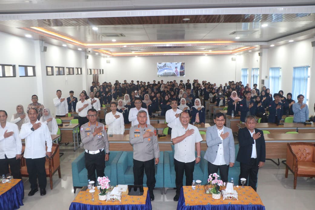 Selain itu, Kapolda mengingatkan mahasiswa agar mampu menjaga diri dari berbagai pengaruh negatif seperti narkoba, judi online, serta meningkatkan kesadaran tertib berlalu lintas guna menekan angka kecelakaan. Ia juga menyoroti ancaman kejahatan siber dan maraknya hoaks di era digital. Mahasiswa diharapkan menjadi agen intelektual yang kritis dalam menerima informasi, mampu memverifikasi kebenaran sumber, serta tidak ikut menyebarkan provokasi yang dapat memecah belah persatuan.