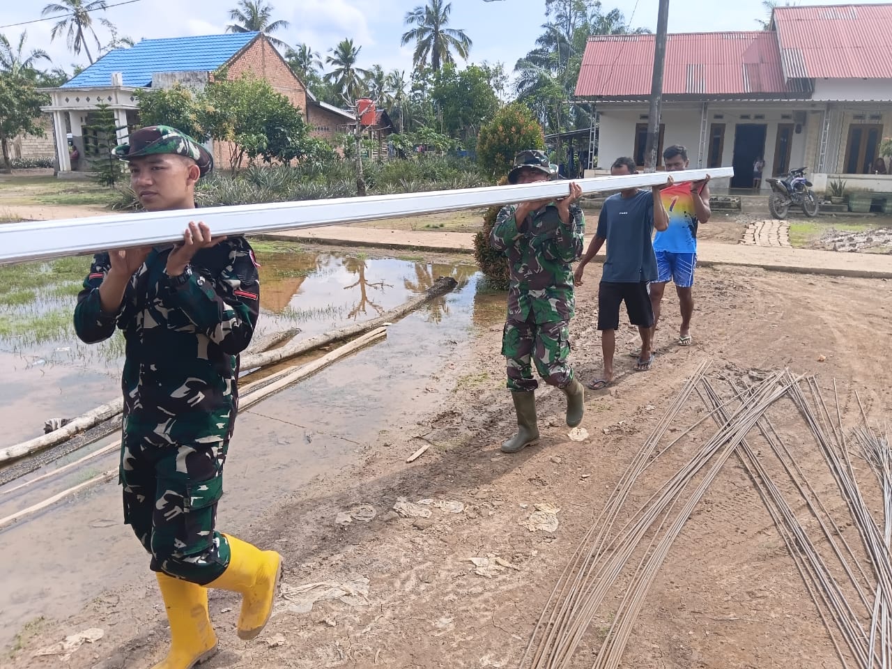 BANYUASIN – Bahan material untuk program rehabilitasi Rumah Tidak Layak Huni (RTLH) dalam rangka TMMD (TNI Manunggal Membangun Desa) ke-127 telah tiba di lokasi, Desa Wonosari, Kecamatan Pulau Rimau, Kabupaten Banyuasin. Material ini akan digunakan untuk merehabilitasi rumah-rumah warga yang memenuhi kriteria RTLH, sehingga menjadi hunian yang lebih layak dan sehat.