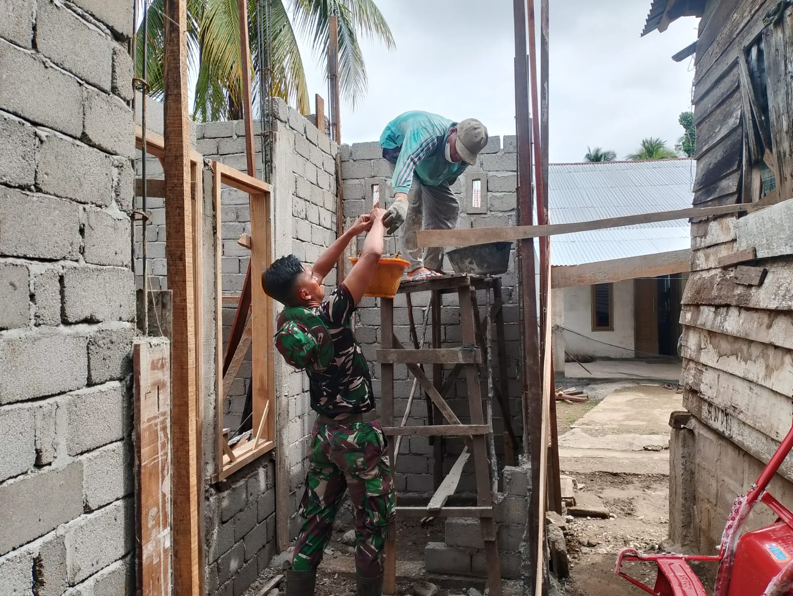 Satgas TMMD ke-127 Kodim 0302/Inhu Kebut Pemasangan Batako Rumah Ibu Baida