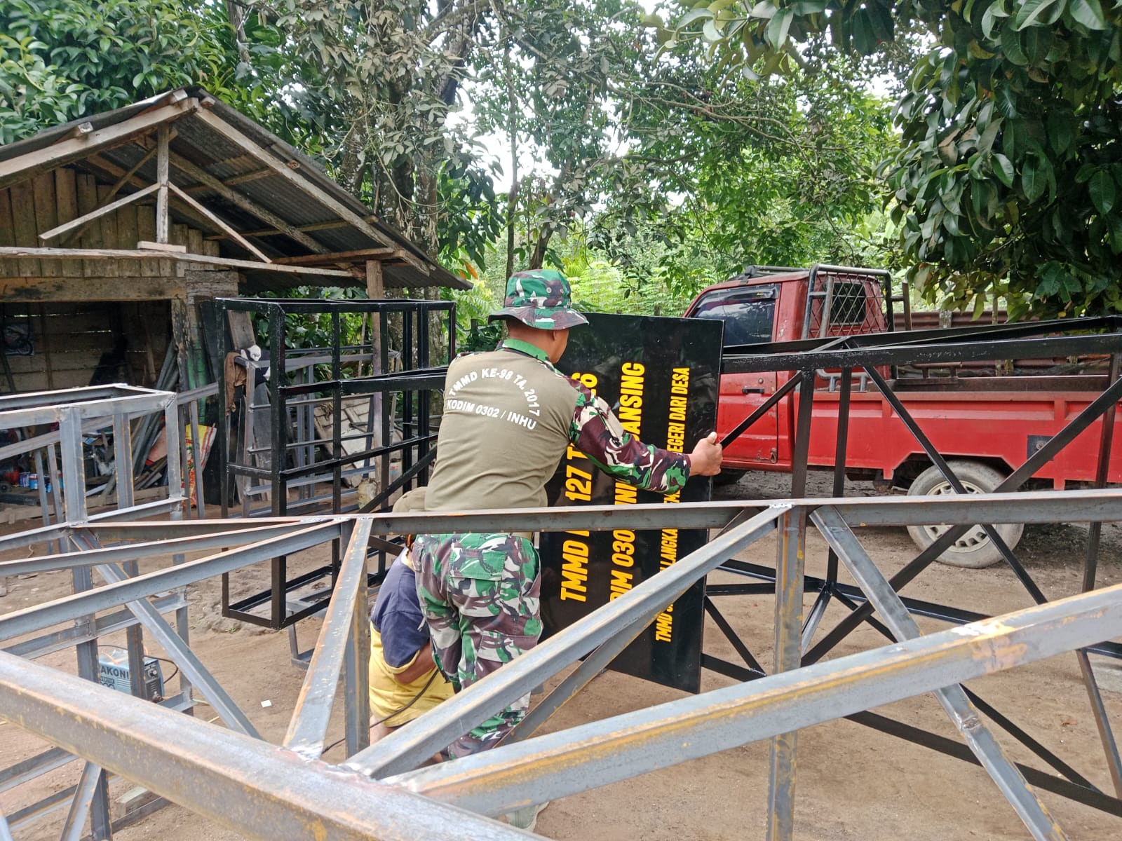 TMMD ke-127 Kodim 0302/Inhu Bangun Tower Air Bersih di Mushala Nurul Alif