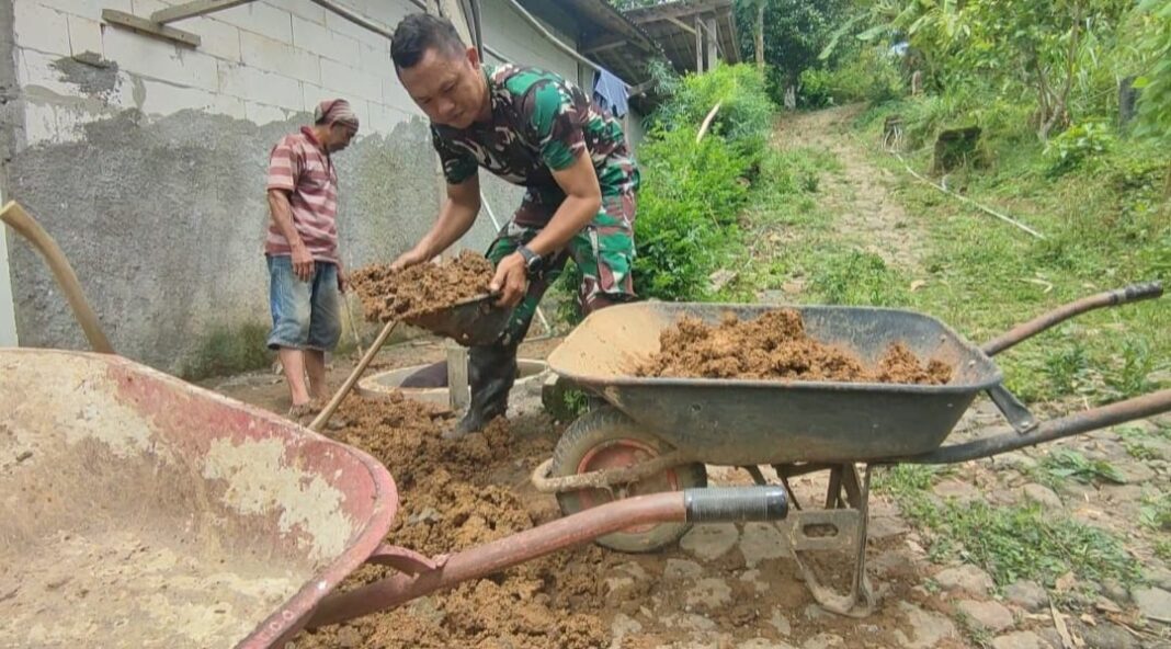 Sejumlah personel TNI terlihat kompak bekerja bersama warga, mulai dari proses penggalian, pemasangan gorong gorong beton, hingga penyempurnaan konstruksi jamban. Semangat kebersamaan begitu terasa, di mana setiap pihak saling membantu agar pembangunan dapat selesai tepat waktu dan sesuai standar kesehatan.