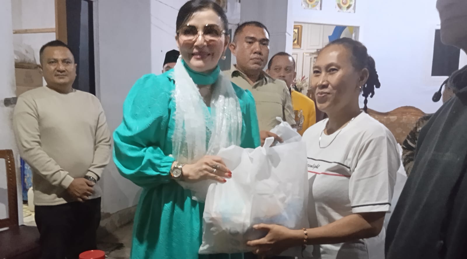 Christiany Eugenia Paruntu bahkan turun langsung ke lapangan, menyapa warga sekaligus menyerahkan bantuan secara simbolis. Kehadirannya bersama Rasky Mokodompit disambut antusias oleh masyarakat yang merasa terbantu dengan adanya paket sembako tersebut.