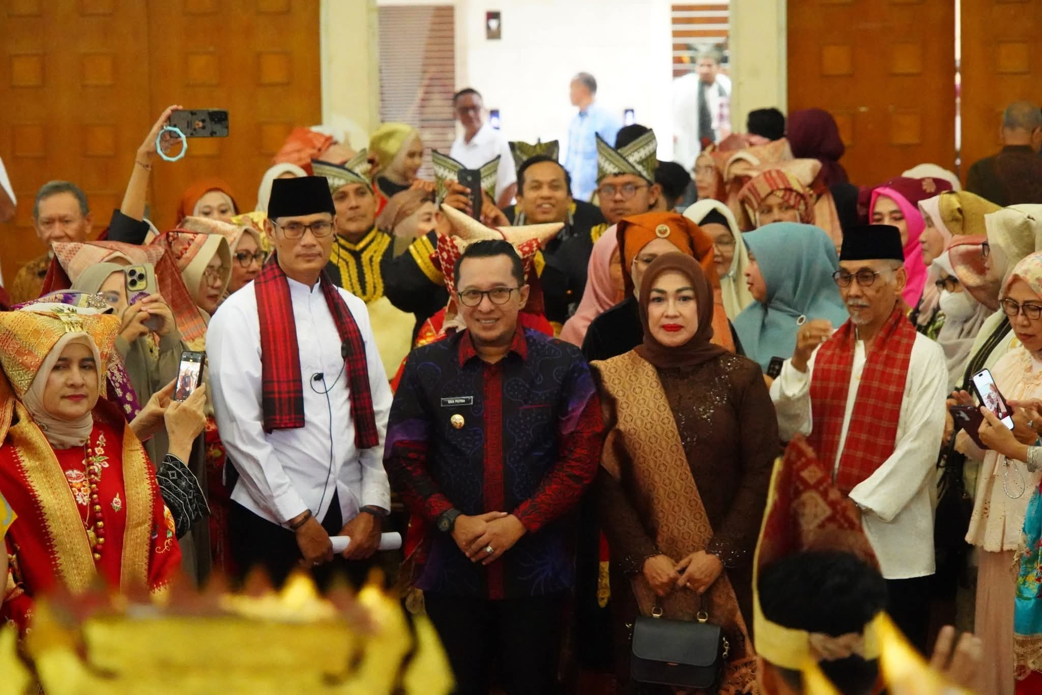 Bupati Eka Putra didampingi Ketua TP PKK Tanah Datar Ny. Lise Eka Putra mengapresiasi seluruh rangkaian kegiatan tersebut, salah satunya penampilan adat salingka nagari prosesi adat Lintau Poi Manjanguak yang bertujuan untuk mengenalkan adat dan budaya kepada generasi muda di perantauan.