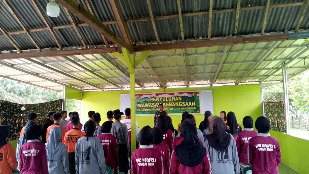 Muba, dutametro.com– Di tengah pelaksanaan pembangunan infrastruktur desa dalam program TNI Manunggal Membangun Desa (TMMD) ke-126, Satgas TMMD Kodim 0401/Muba juga melaksanakan kegiatan nonfisik berupa sosialisasi wawasan kebangsaan.