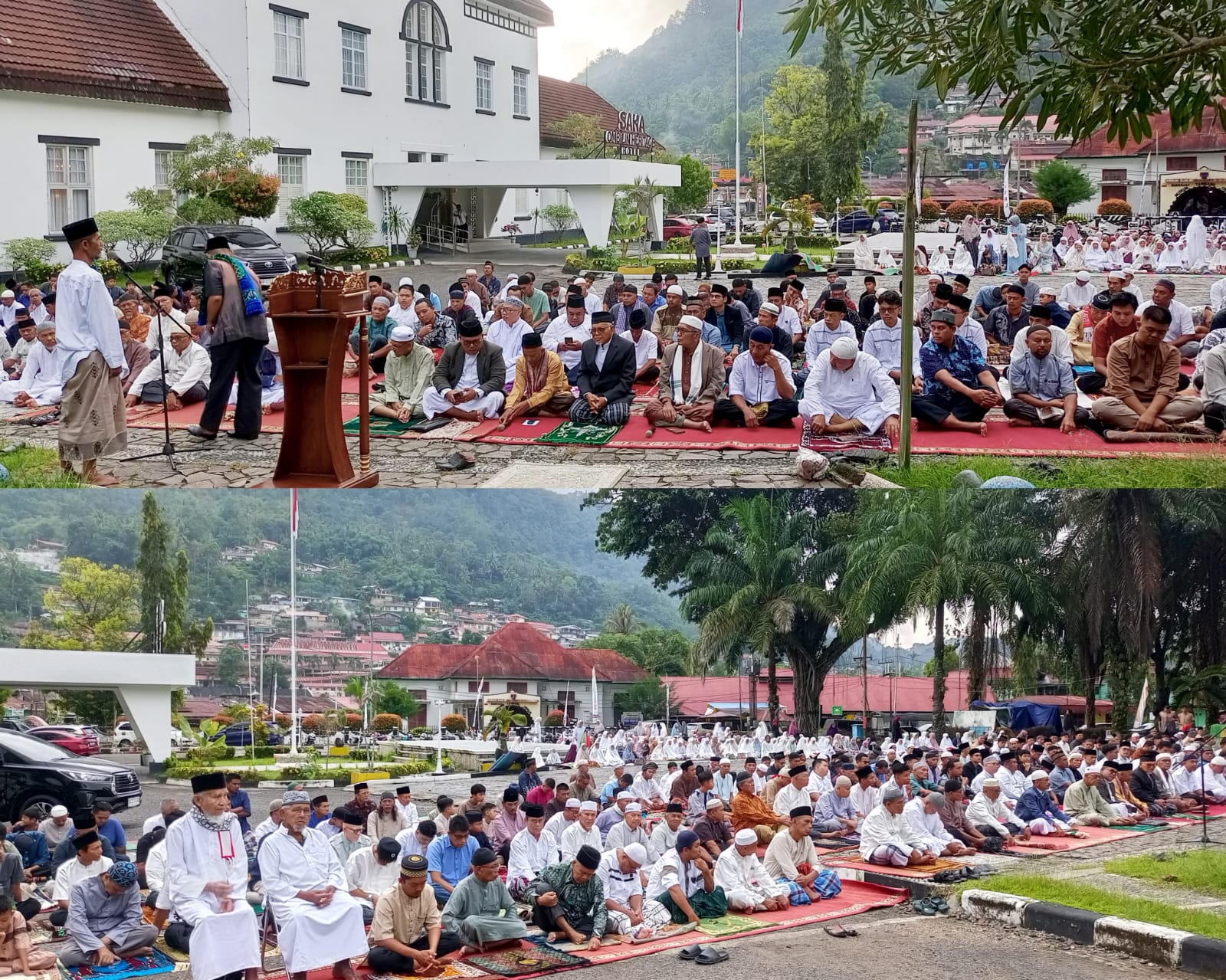 Sawahlunto,dutametro.com – Warga Muhammadiyah Sawahlunto menggelar sholat IdulFitri 1447 H hari ini, Jumat (20/03/2026). Ada tiga lokasi yang melaksanakan sholat IdulFitri, yakni PDM Sawahlunto di lapangan Segitiga/ halaman Saka Heritage Hotel Sawahlunto dengan Imam dan Khatib: Ustad Mukhlis, S. Ag., MA(Wakil Ketua PDM Sawahlunto. Masjid Raya Silungkang Kecamatan Silungkang dengan Imam dan Khatib Ustad Adrimas, S.Ag., MA (wakil Ketua PDM Sawahlunto) dan cabang Muhammadiyah Talawi, Masjid Muttaqin Kecamatan. Talawi dengan khatib Ustad Fadhli Rifenta, M.Pd( Ketua MUI Sawahlunto yang juga Ketua Majelis Tablig dan Tarjih PDM Sawahlunto).