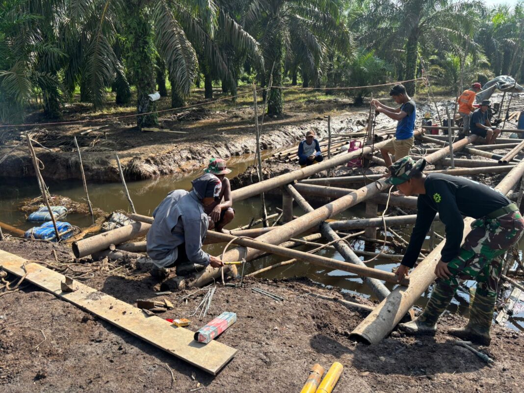 Muba, dutametro.com — Tanpa kenal lelah, Satgas TNI Manunggal Membangun Desa (TMMD) ke-126 Kodim 0401/Muba terus berkontribusi dalam meningkatkan infrastruktur pedesaan dengan membangun jembatan penghubung antara Dusun 1 dan Dusun 2 di Desa Pinang Banjar, Kecamatan Sungai Lilin, Senin (20/10/2025).