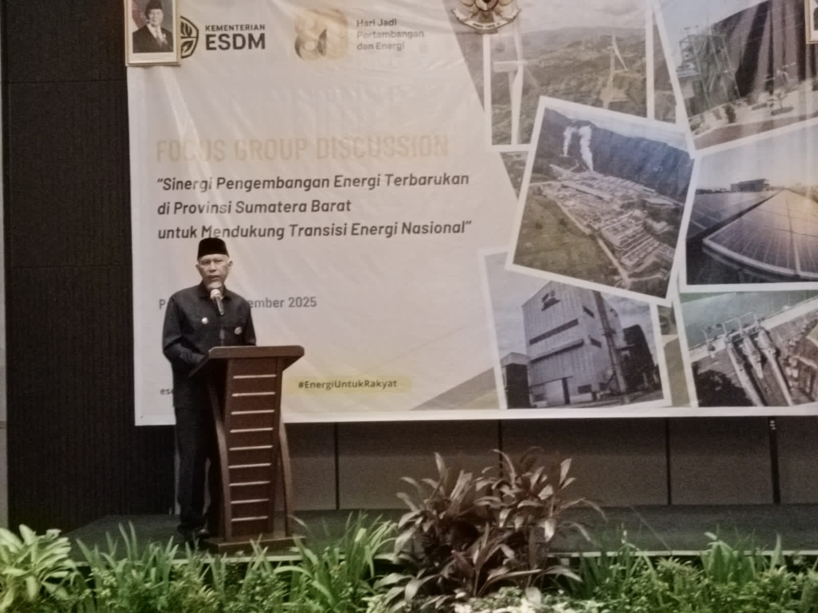 Padang, dutametro.com — Pemerintah Provinsi Sumatera Barat (Pemprov Sumbar) menegaskan komitmennya mendukung percepatan transisi energi nasional, itu ditandai dengan penyelenggaraan Focus Group Discussion (FGD) Sinergi Pengembangan Energi Terbarukan di Hotel Santika Padang, Kamis (20/11/2025). Kegiatan ini dibuka langsung oleh Gubernur Sumbar, Mahyeldi Ansharullah.