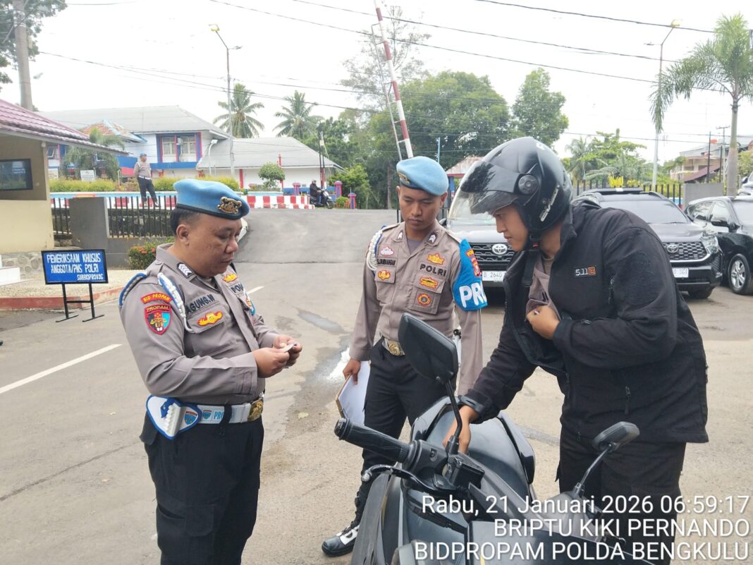 BENGKULU – Polda Bengkulu kembali menegaskan komitmennya dalam menjaga kedisiplinan dan profesionalisme internal melalui pelaksanaan Operasi Penegakan Ketertiban dan Disiplin (Ops Gaktibplin), Rabu pagi, 21 Januari 2026. Kegiatan ini dilaksanakan mulai pukul 08.00 WIB bertempat di Gerbang Utama Mapolda Bengkulu dan Pintu Gerbang Reskrimum.