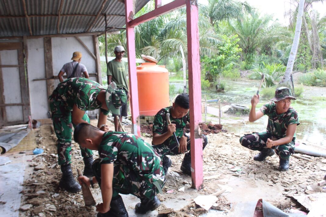 TMMD ke-127 Kodim 0430/Banyuasin Mulai Rehab RTLH Ibu Suharti di Wonosari