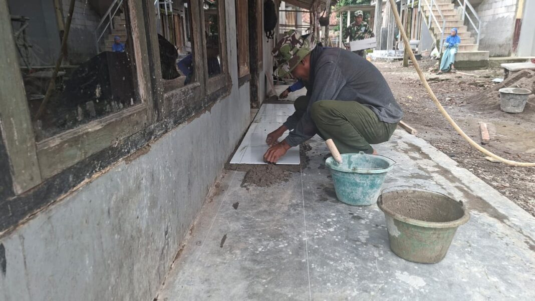 Brebes – Program TNI Manunggal Membangun Desa (TMMD) Reguler ke-127 Kodim 0713 terus menunjukkan progres signifikan. Pada Minggu (22/02/2026), salah satu sasaran fisik berupa Rehabilitasi Rumah Tidak Layak Huni (RTLH) milik Ibu Caski telah memasuki tahap pemasangan keramik lantai.