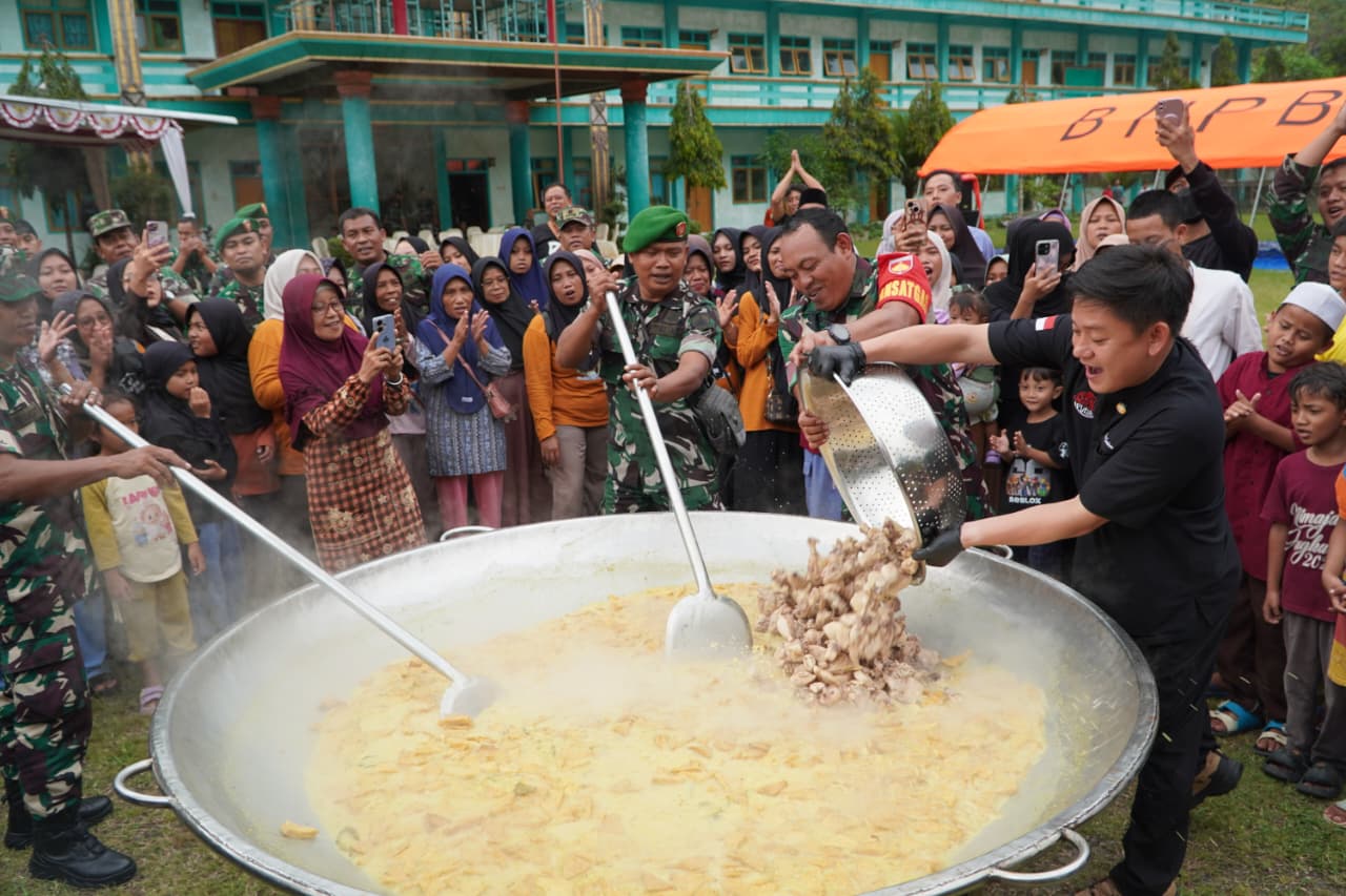 Tepat pukul 15.00 WIB, proses memasak dimulai. Prajurit TNI, relawan, dan warga saling membantu mengaduk dan menyiapkan hidangan. Kebersamaan itu tampak sederhana, namun sarat makna.