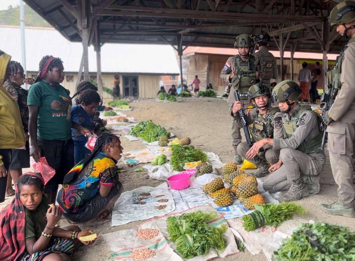 Bagi para mama-mama, langkah tersebut bukan sekadar transaksi jual beli. Kehadiran aparat yang mau berinteraksi dan membeli dagangan mereka menjadi simbol perhatian sekaligus dorongan ekonomi di tengah keterbatasan akses pasar.