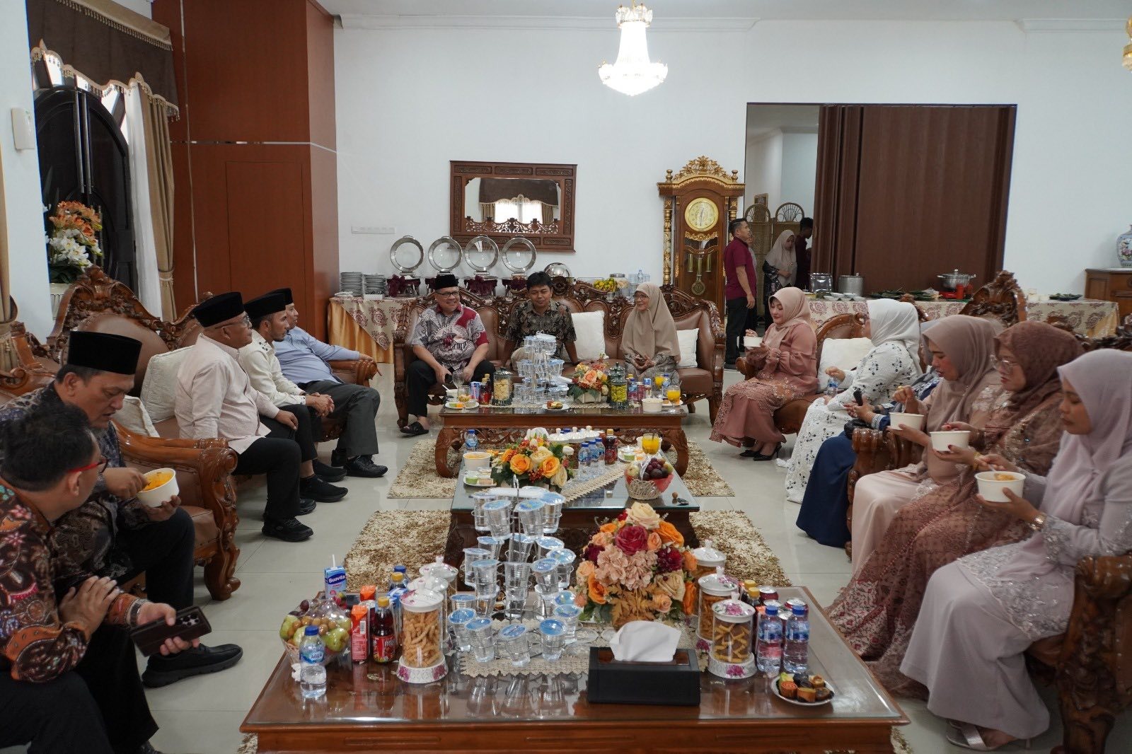 Dalam suasana penuh keakraban, para pimpinan daerah saling bertukar ucapan selamat Idulfitri sekaligus berdiskusi ringan terkait penguatan kolaborasi pembangunan daerah.