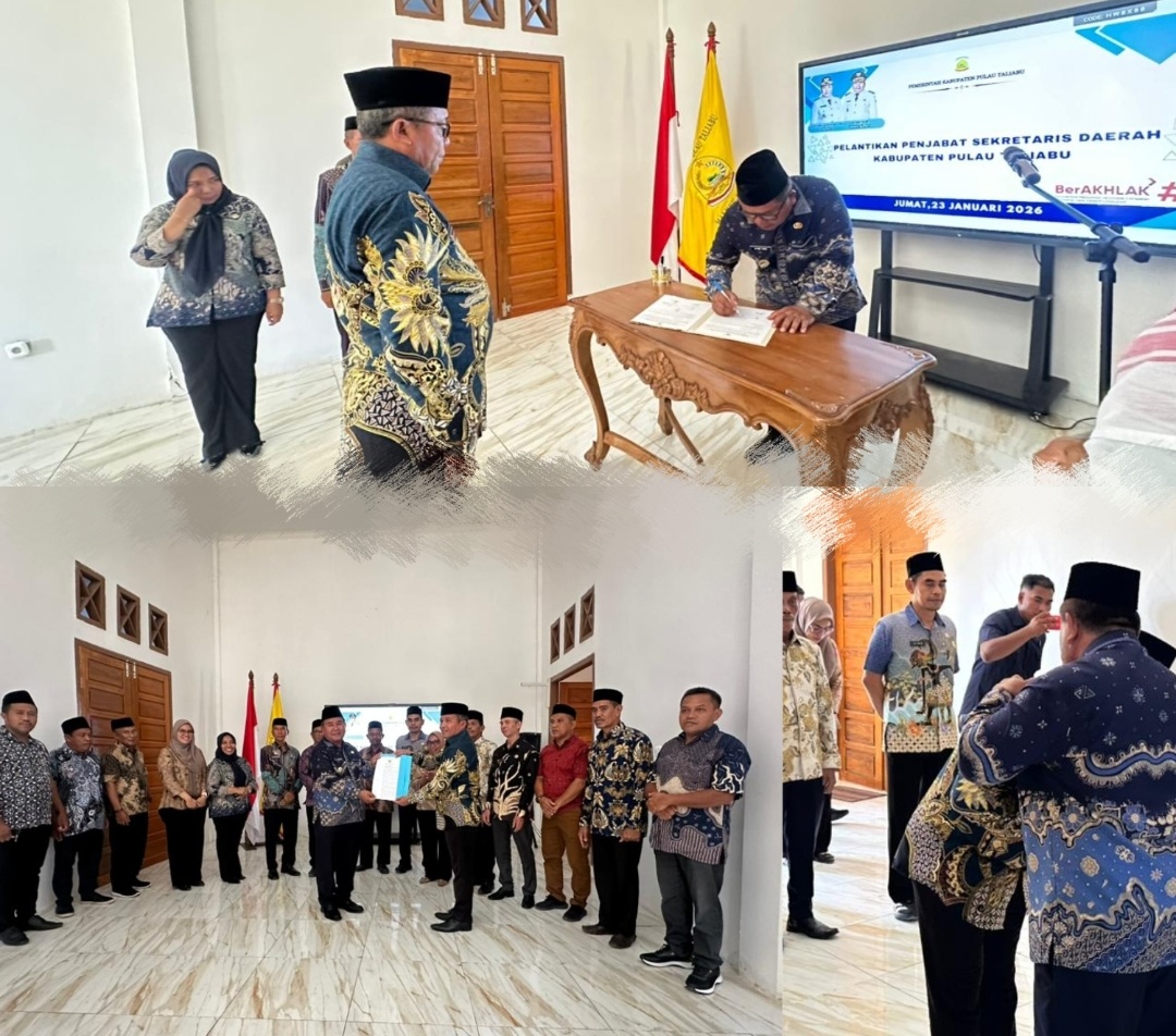 Pelantikan Penjabat Sekretaris Daerah tersebut dilaksanakan berdasarkan Persetujuan Gubernur Maluku Utara melalui Surat Nomor: 8003/002/I/2026 tentang Pengangkatan Penjabat Sekretaris Daerah Kabupaten Pulau Taliabu.