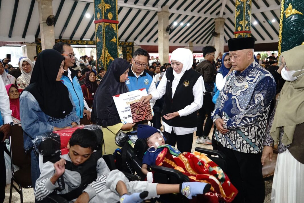 Dalam sambutannya, Khofifah menegaskan bahwa bantuan sosial yang disalurkan bukan sekadar bantuan konsumtif, melainkan bagian dari strategi penguatan ekonomi masyarakat berbasis keluarga dan desa.
