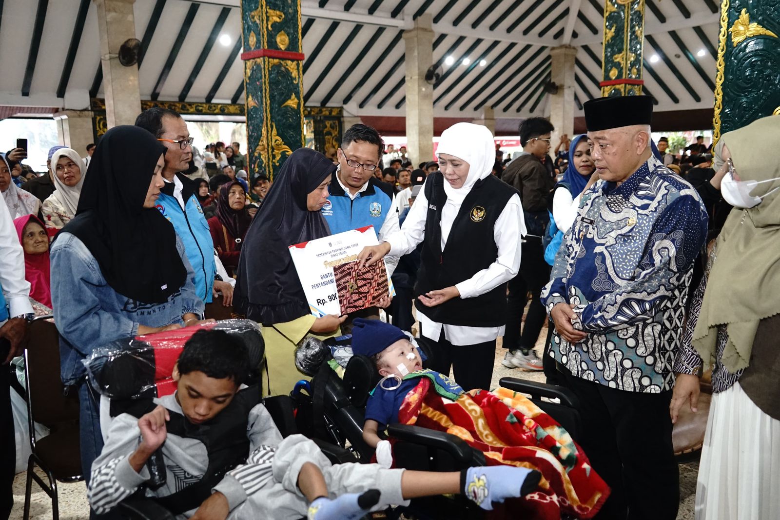 Di Pendopo Agung Kabupaten Malang, Gubernur Khofifah menyerahkan berbagai bentuk bantuan, mulai dari Program Keluarga Harapan (PKH) Plus, bantuan modal usaha mikro, tali asih bagi pilar sosial, hingga zakat produktif. Bantuan tersebut menyasar ribuan penerima manfaat dari kalangan keluarga prasejahtera, lanjut usia (lansia), hingga pelaku UMKM.