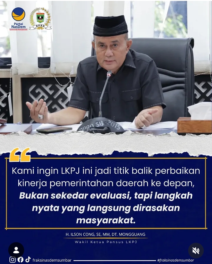 PADANG – Di tengah riuh rendah angka dan tumpukan naskah pertanggungjawaban, hadir sebuah suara yang memecah kebisuan. H. Ilson Cong, SE, MM, Dt. Mongguang, Wakil Ketua Panitia Khusus (Pansus) Laporan Keterangan Pertanggungjawaban (LKPJ) DPRD Sumatera Barat, menegakkan prinsip bahwa evaluasi kinerja tahun ini bukanlah sekadar ritual usai musim yang hampa makna. Ia menuntut momen bersejarah ini menjadi poros perubahan, sebuah titik balik di mana kebijakan berpaling dari sekadar administrasi menuju pelayanan yang menyentuh nurani.